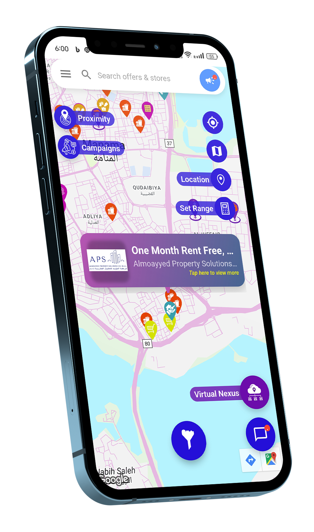 Our interactive map interface lets users explore live offers in their immediate surroundings or adjust their location and radius to discover deals across cities, countries, or continents. For businesses, NearTics provides instant control over timing, visibility, and content—helping vendors eliminate commissions and ad waste while building trust through government-verified status.
